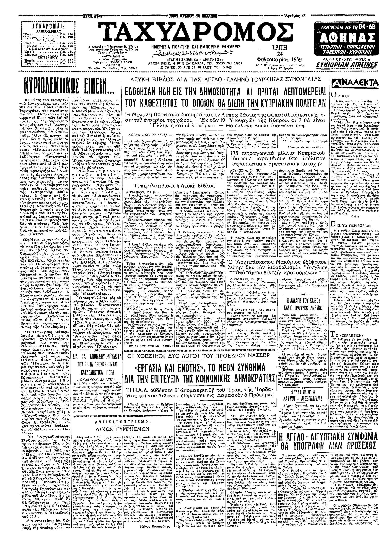 Ταχυδρόμος 24/02/1959