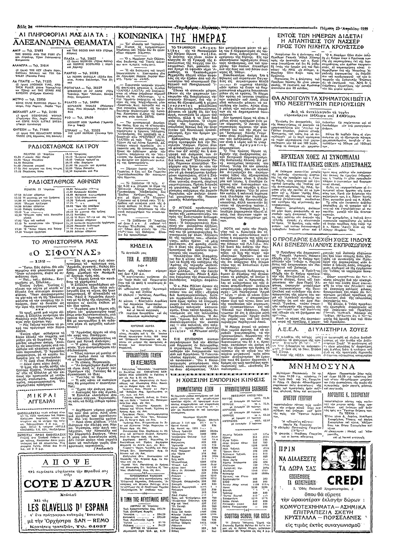 Ταχυδρόμος 23/04/1959