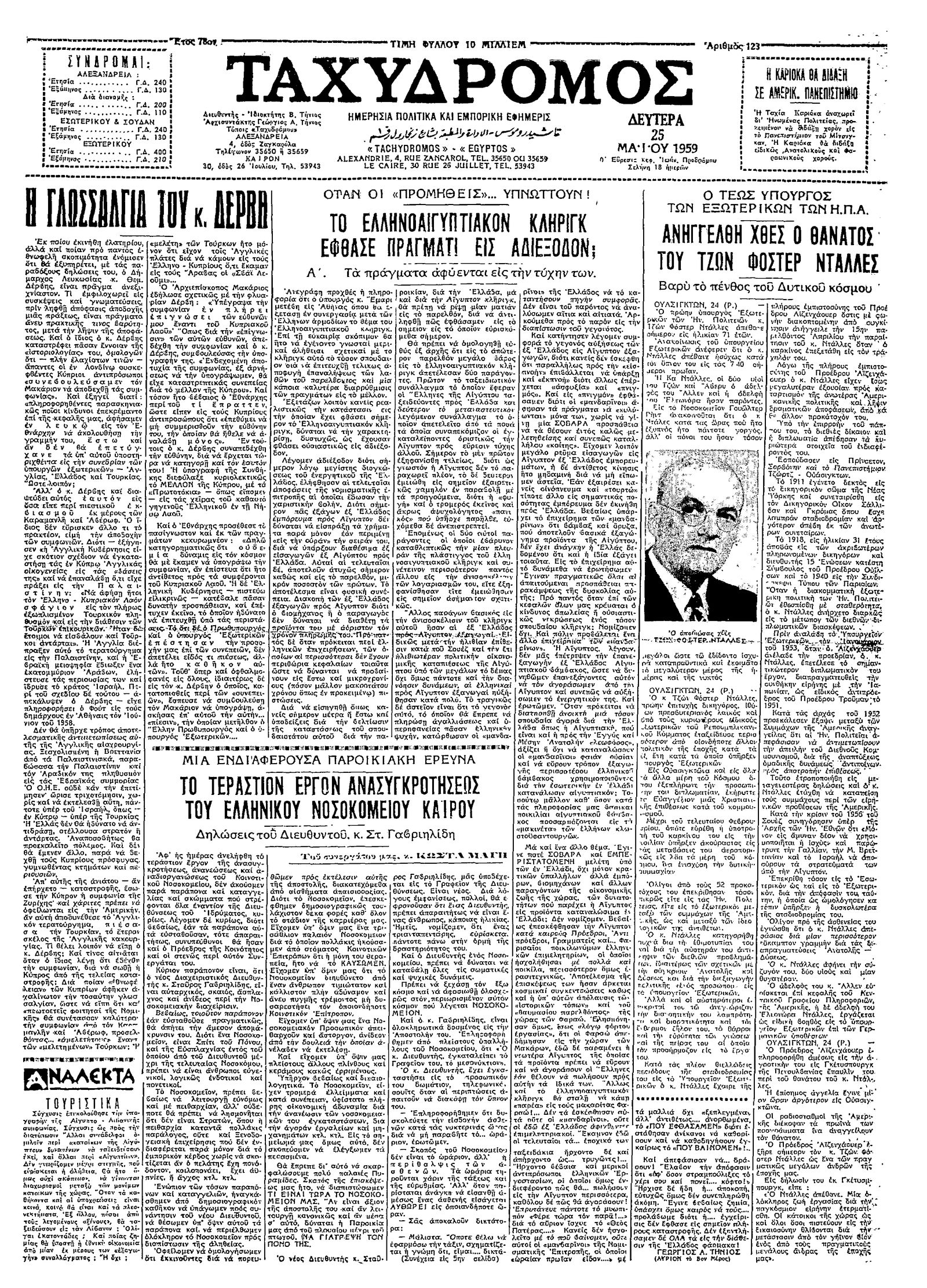 Ταχυδρόμος 25/05/1959