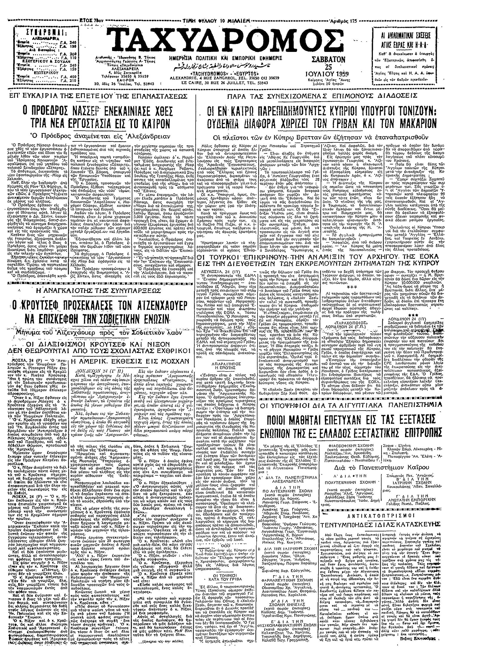 Ταχυδρόμος 25/07/1959