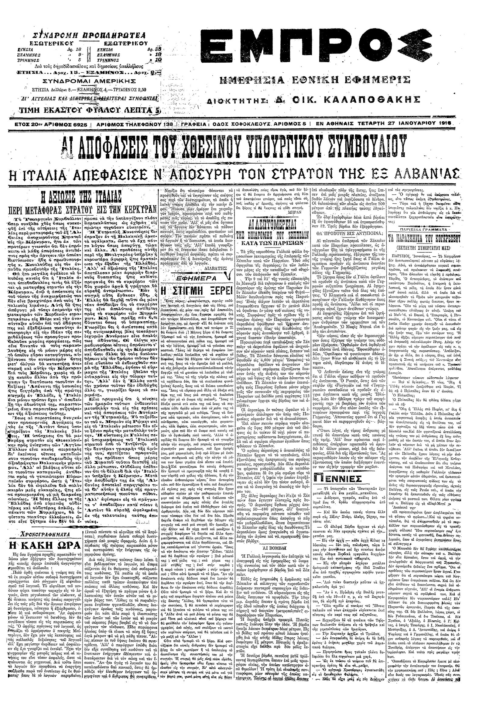 Εμπρός 27/01/1916