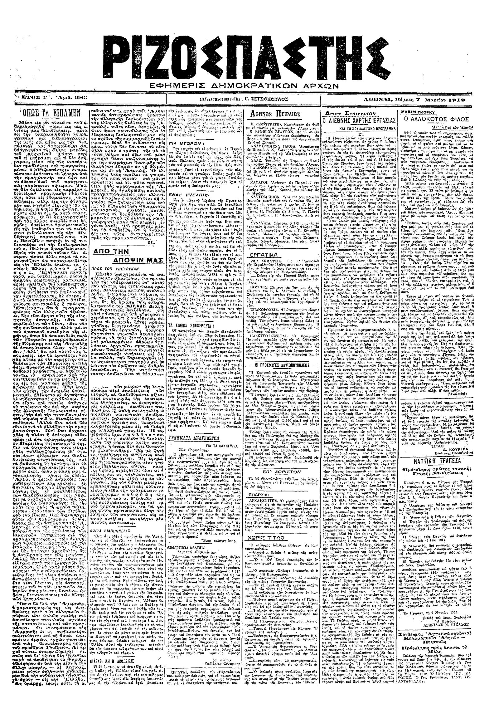 Ριζοσπάστης 07/03/1919