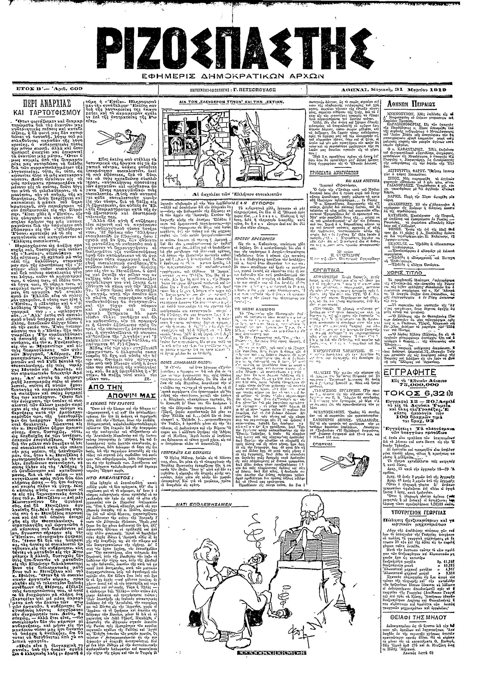 Ριζοσπάστης 31/03/1919