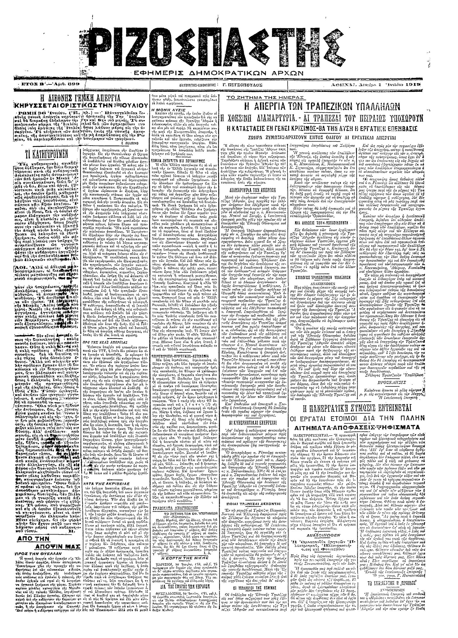Ριζοσπάστης 01/07/1919