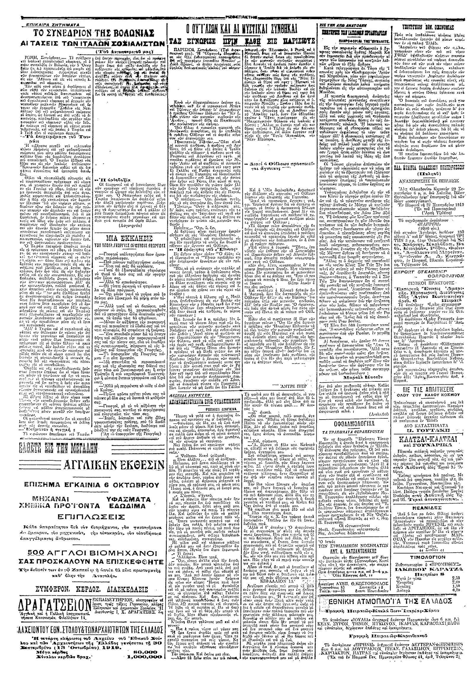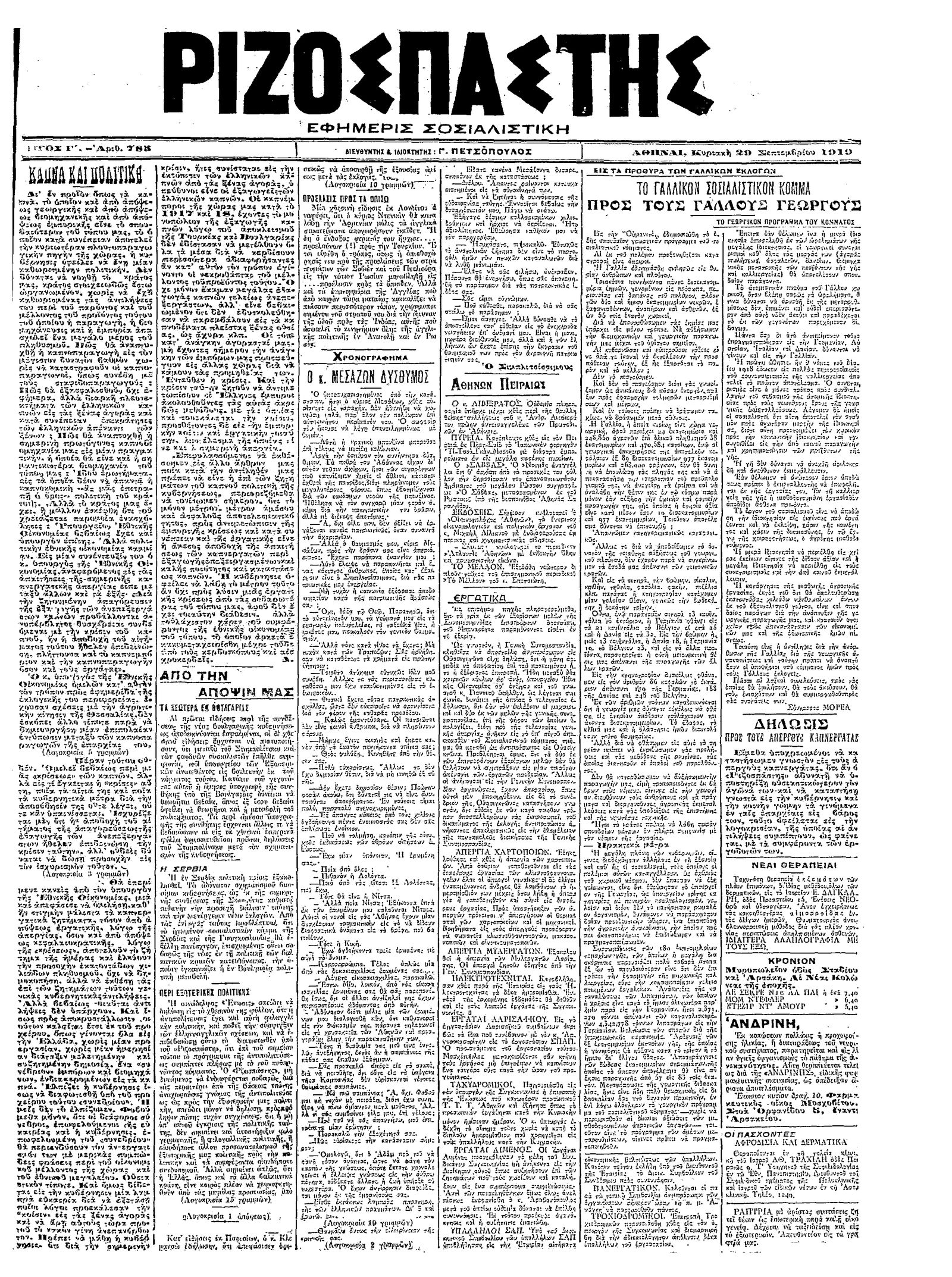 Ριζοσπάστης 29/09/1919