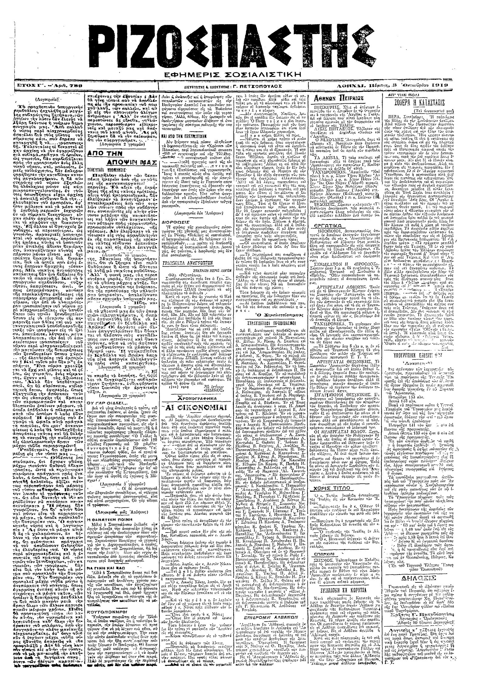 Ριζοσπάστης 03/10/1919