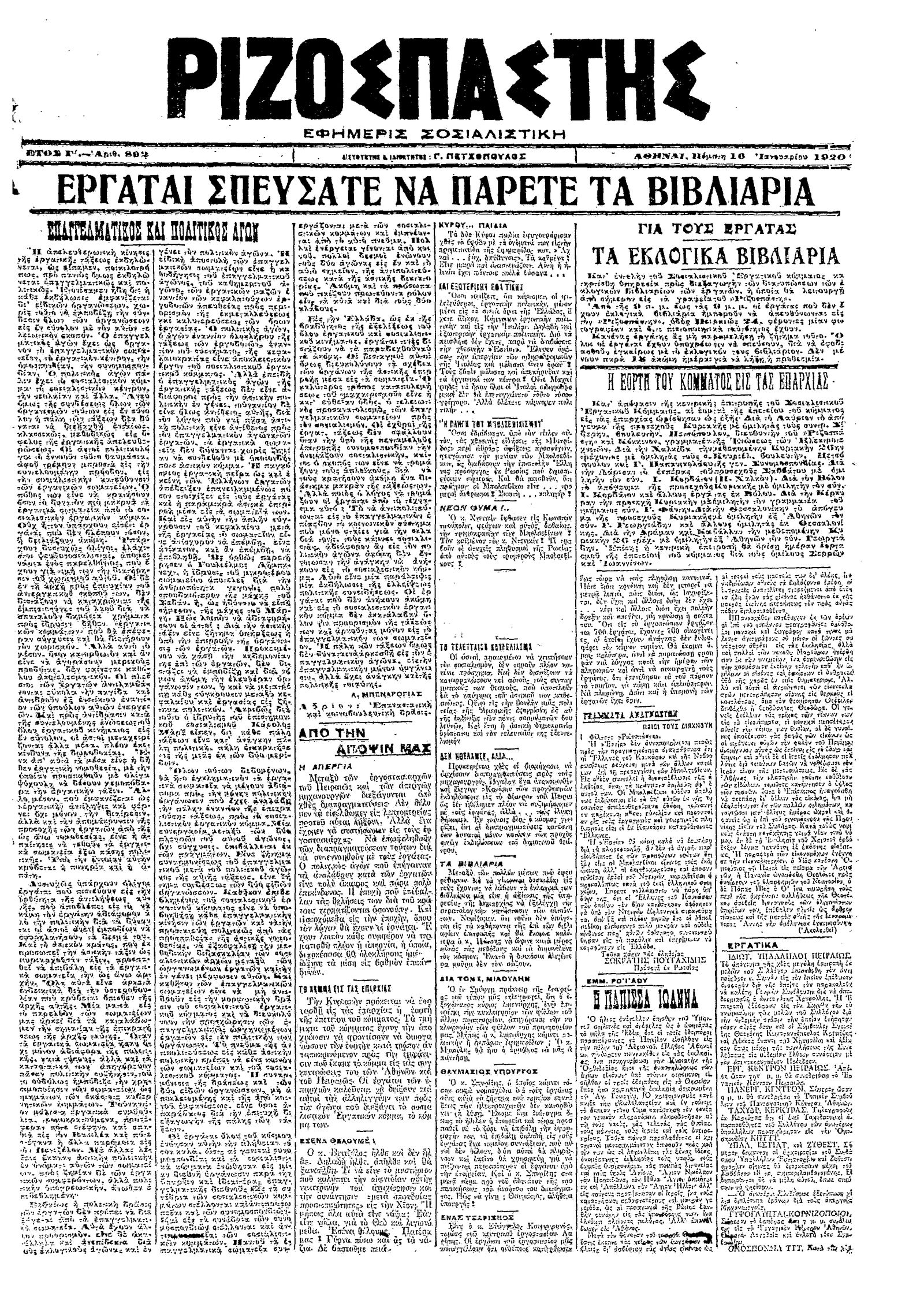 Ριζοσπάστης 16/01/1920