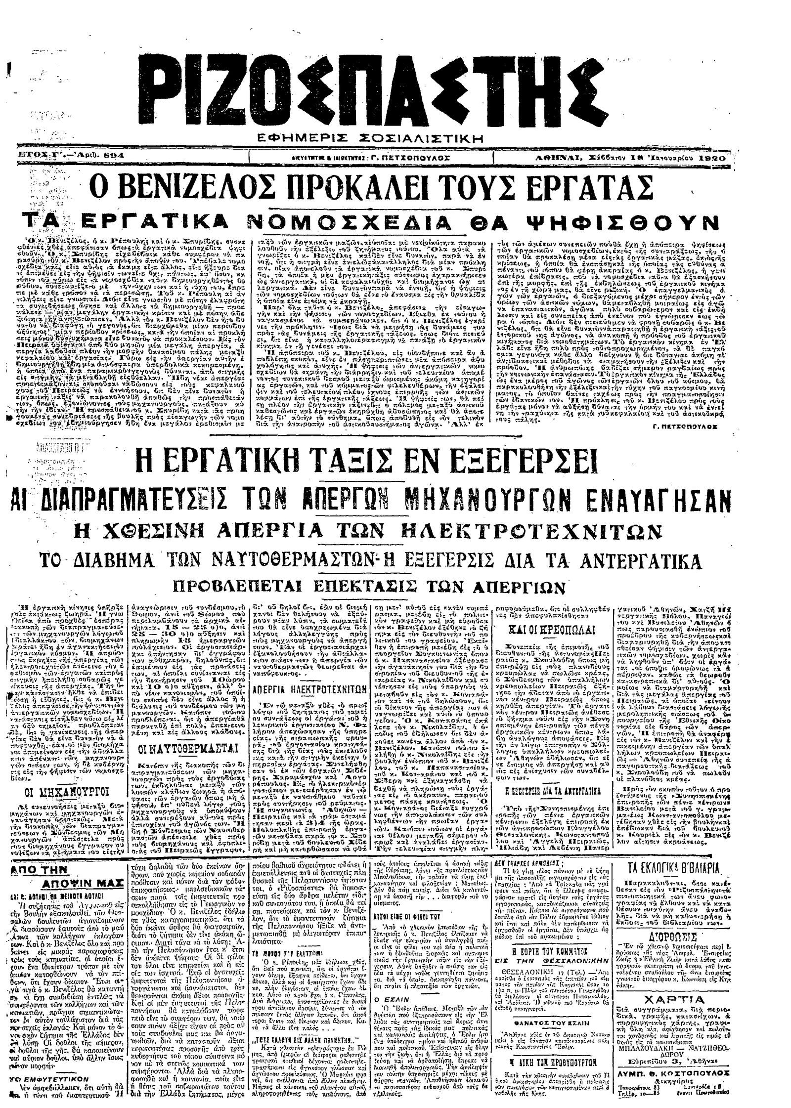 Ριζοσπάστης 18/01/1920