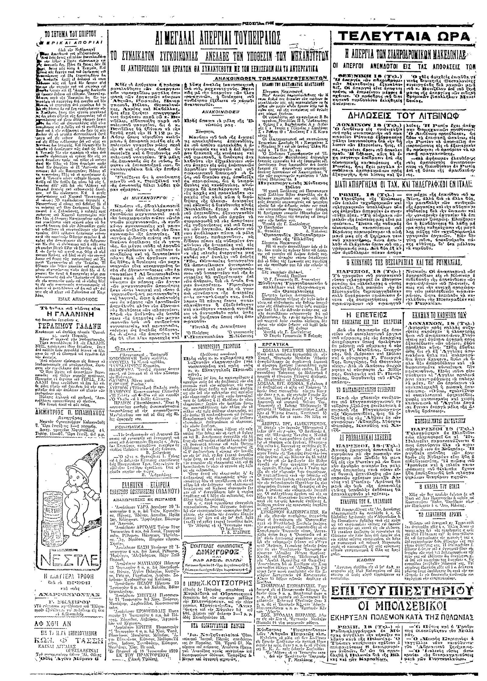 Ριζοσπάστης 19/01/1920