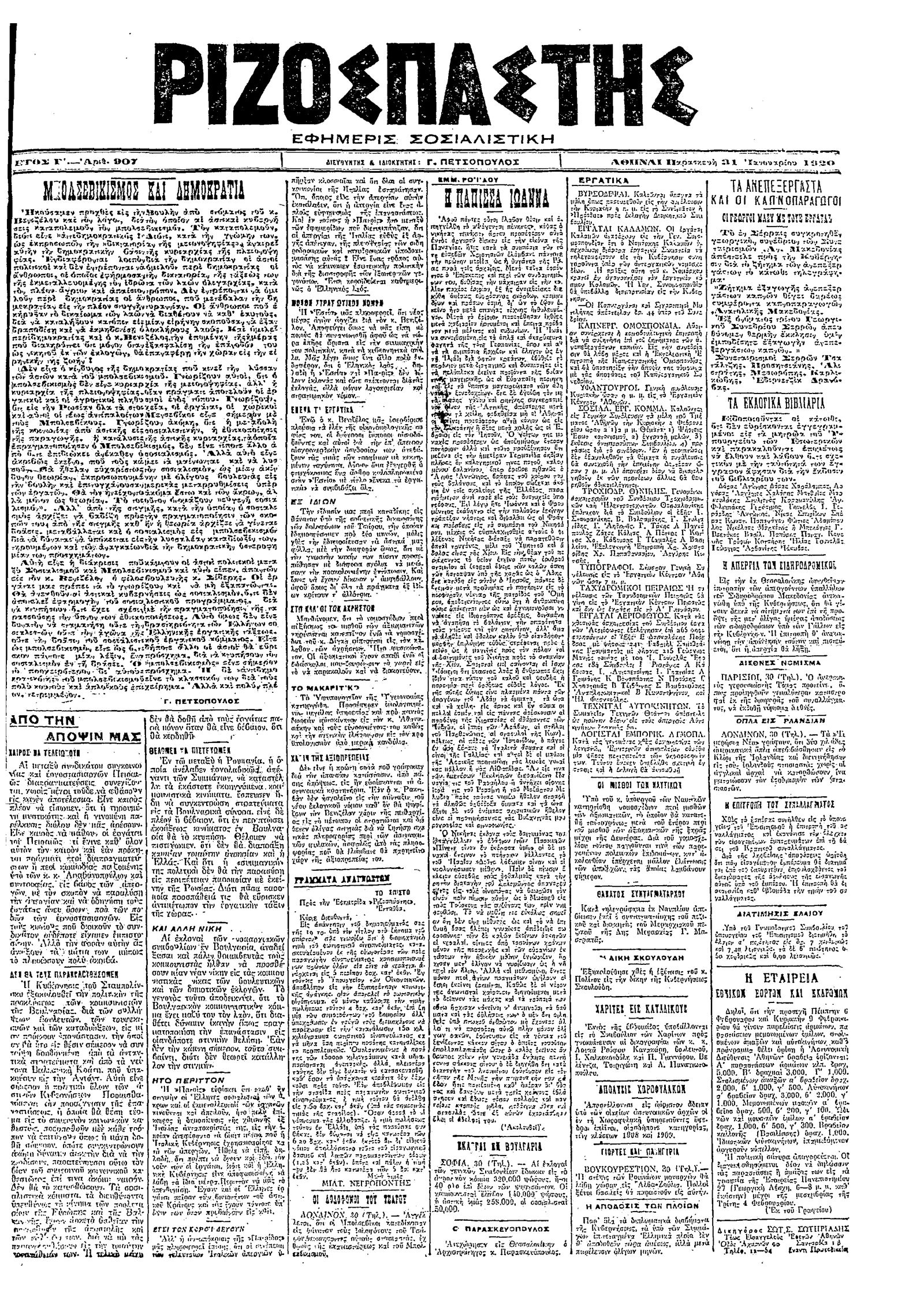 Ριζοσπάστης 31/01/1920