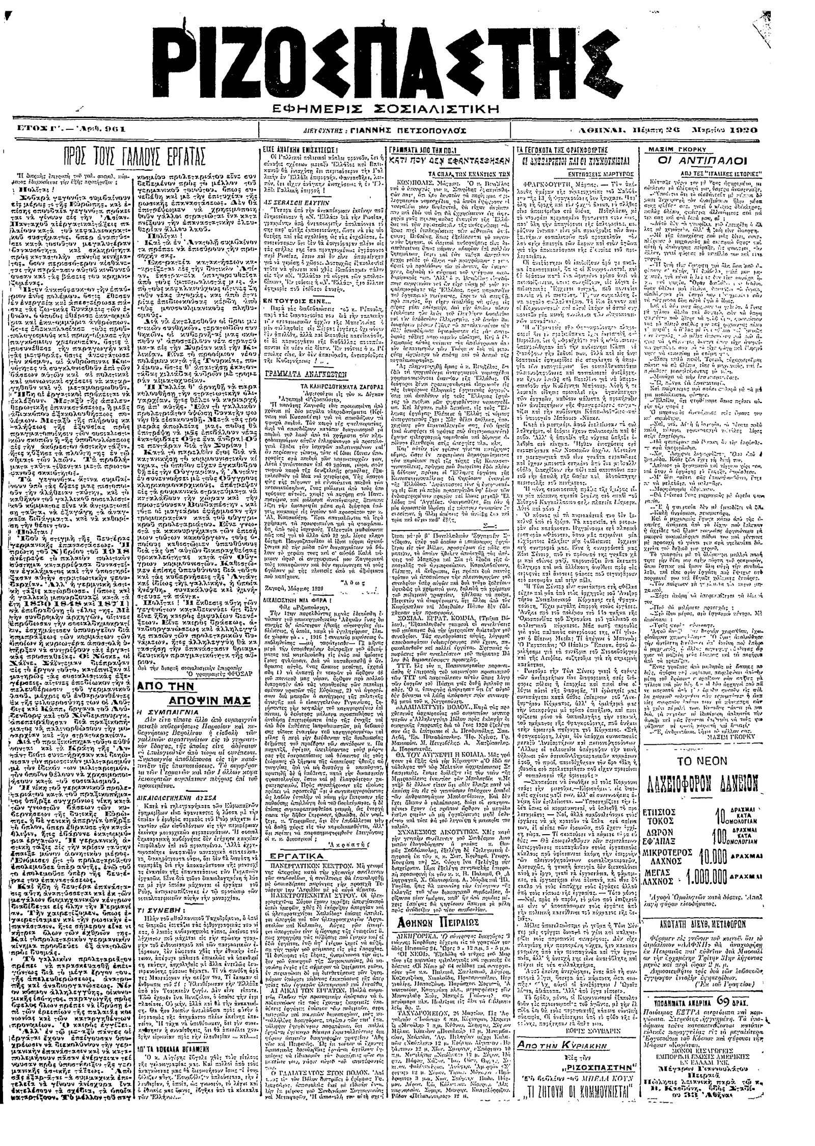 Ριζοσπάστης 26/03/1920