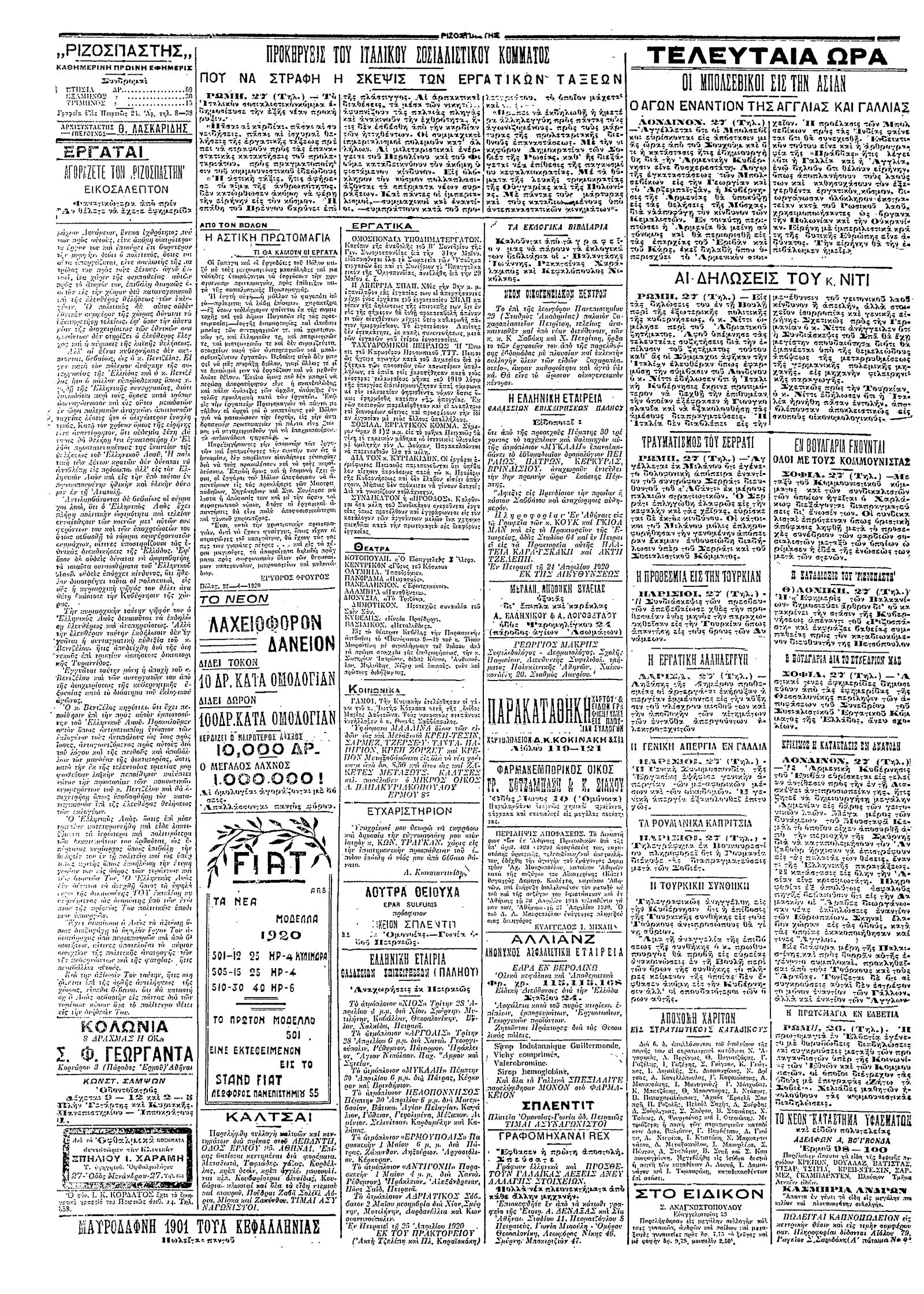 Ριζοσπάστης 28/04/1920
