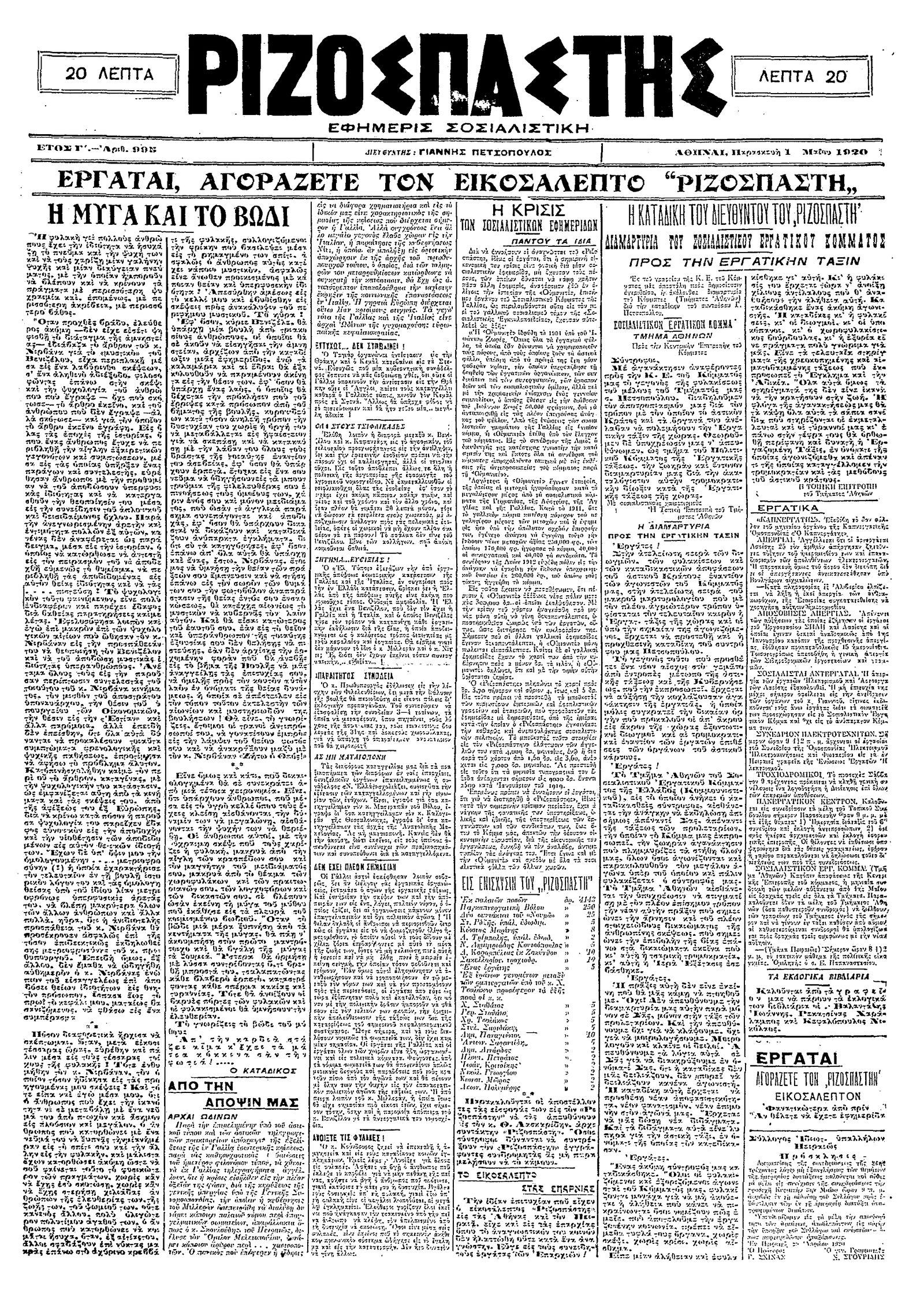 Ριζοσπάστης 01/05/1920