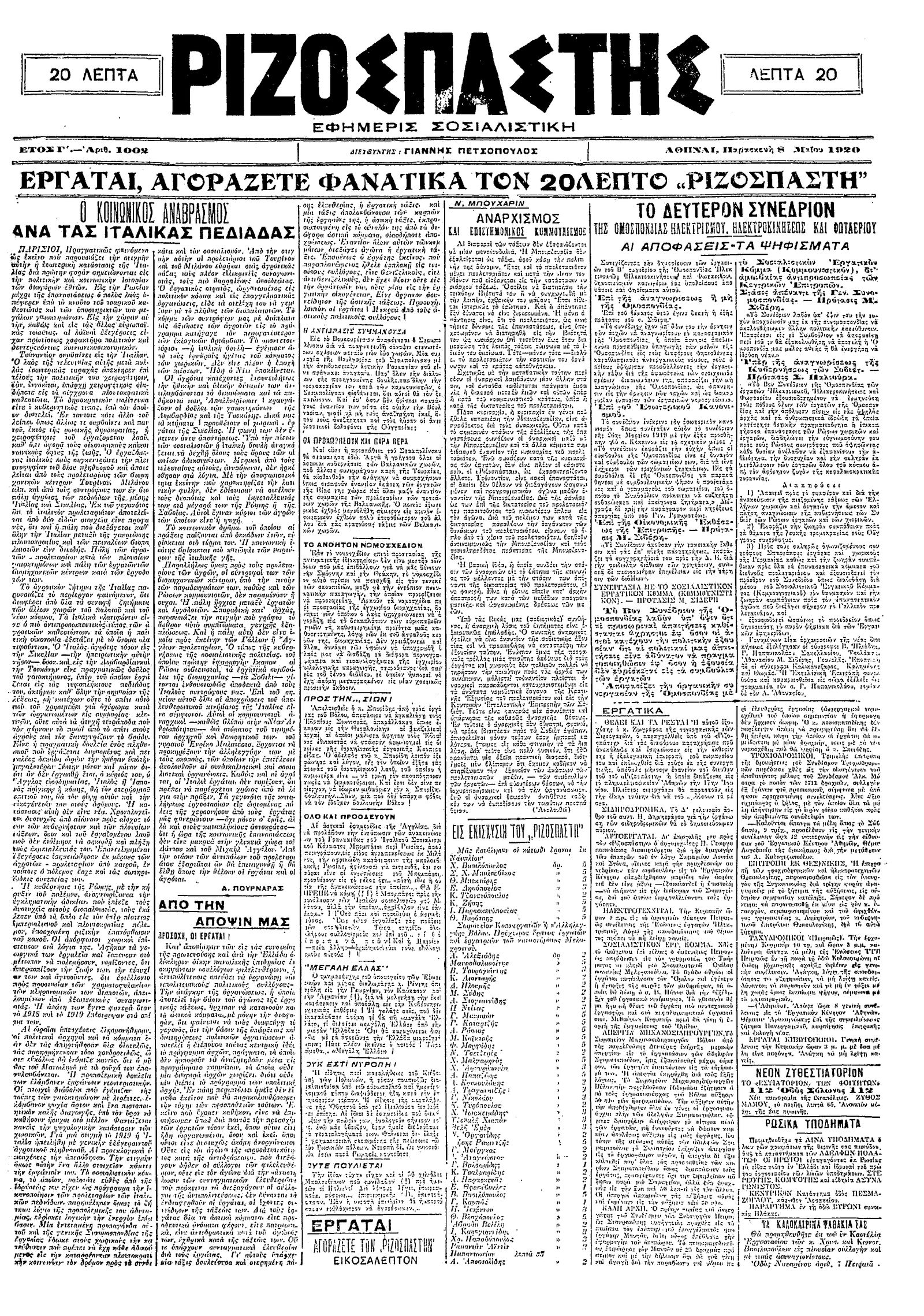Ριζοσπάστης 08/05/1920