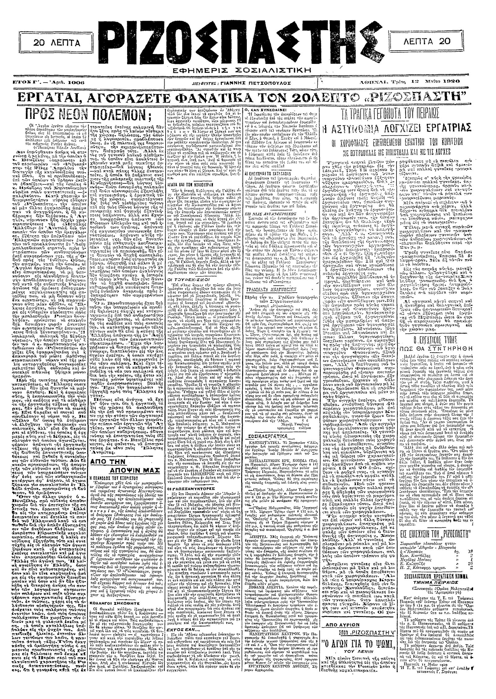 Ριζοσπάστης 12/05/1920