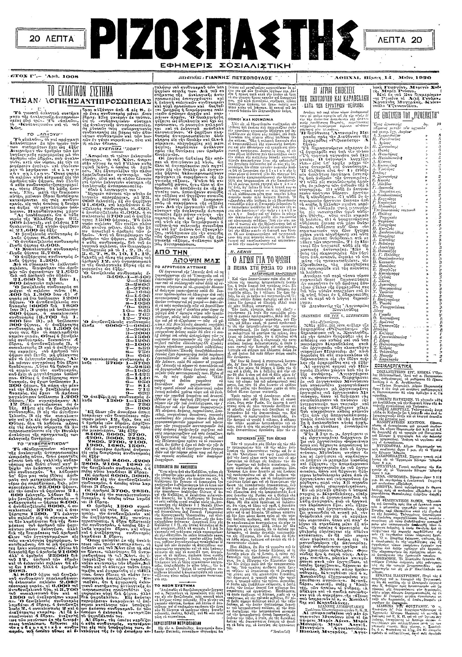 Ριζοσπάστης 14/05/1920