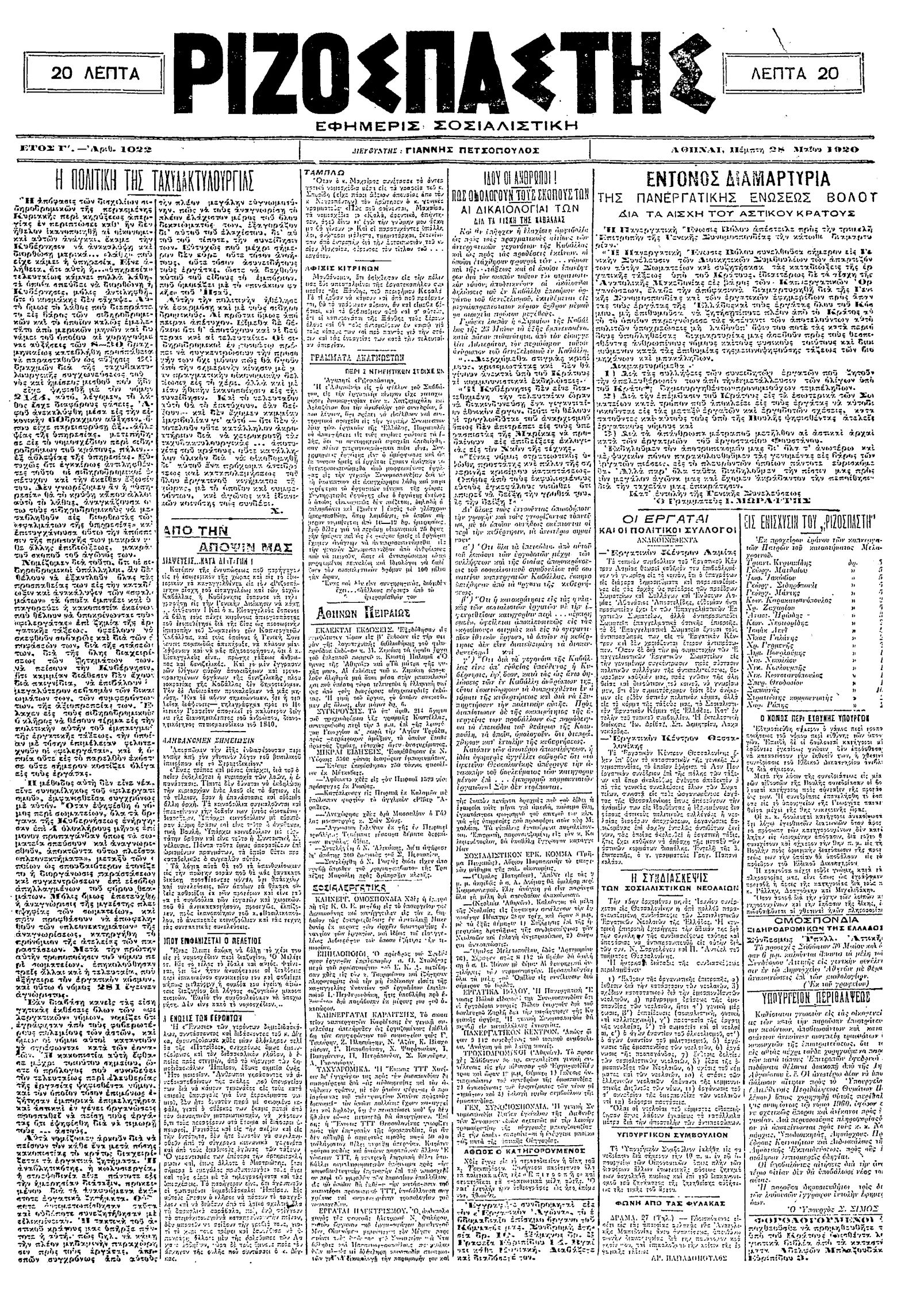 Ριζοσπάστης 28/05/1920