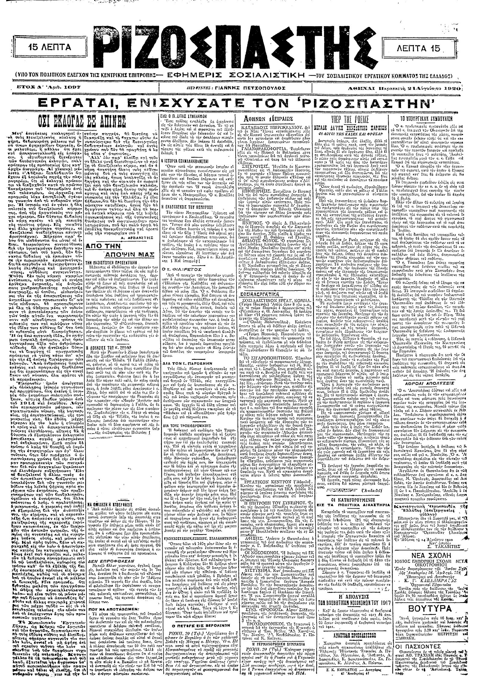 Ριζοσπάστης 21/08/1920