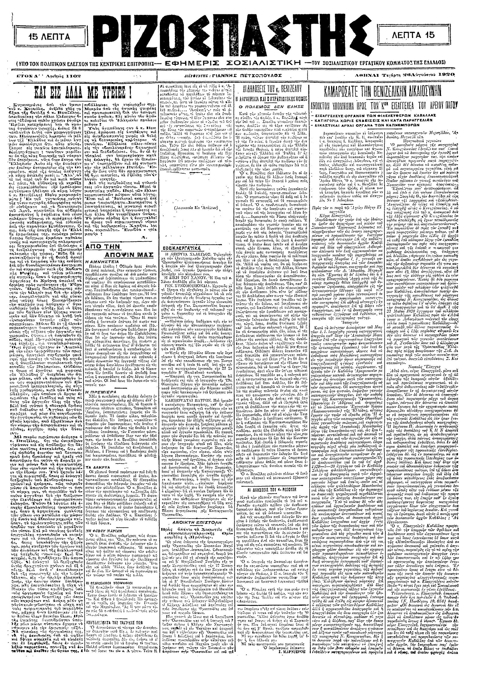 Ριζοσπάστης 26/08/1920