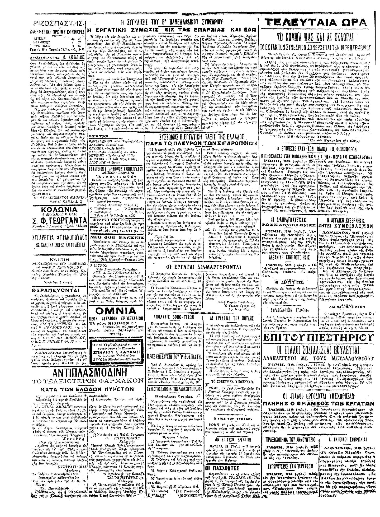 Ριζοσπάστης 29/08/1920