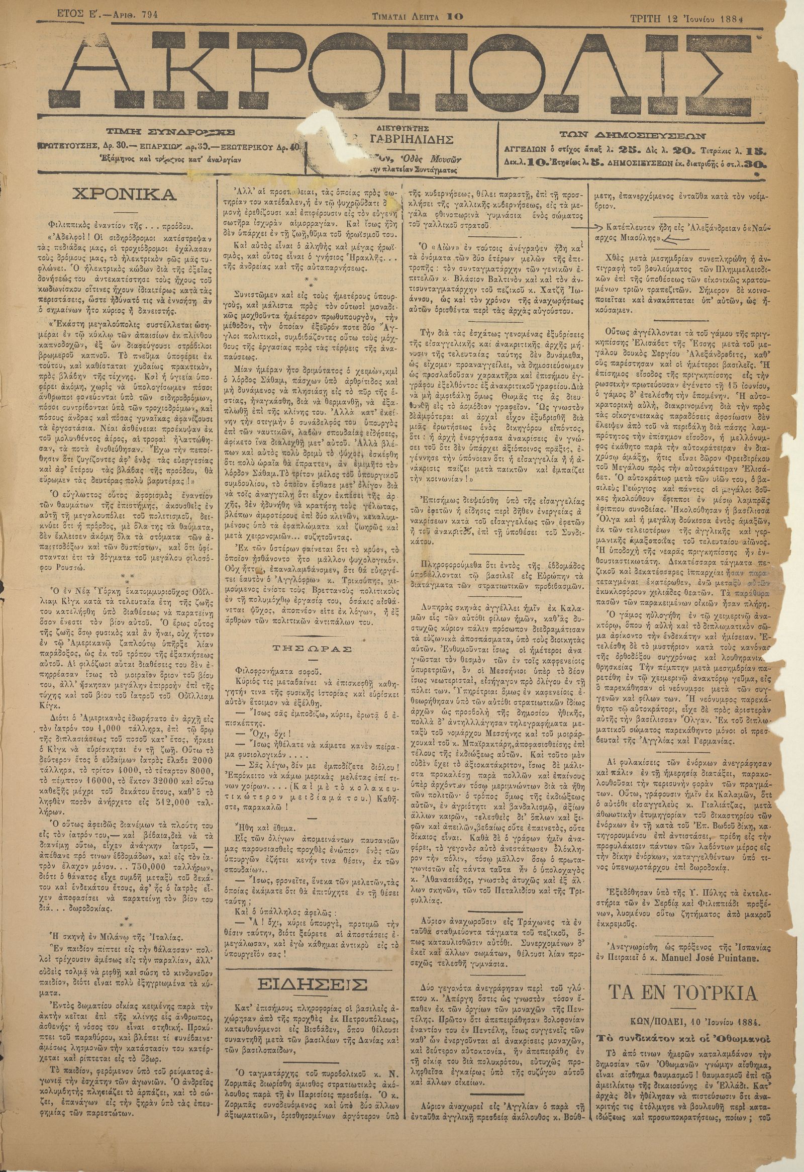 Ακρόπολις 12/06/1884