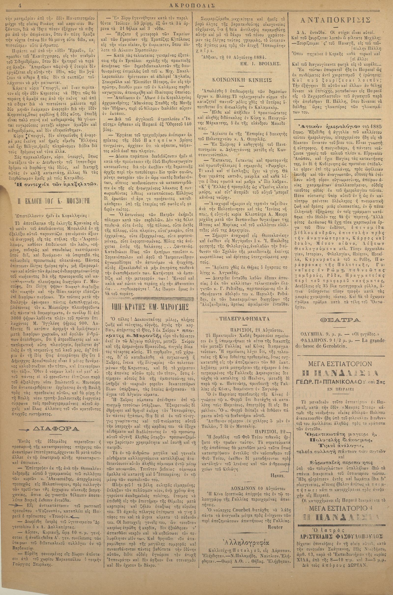 Ακρόπολις 11/08/1884