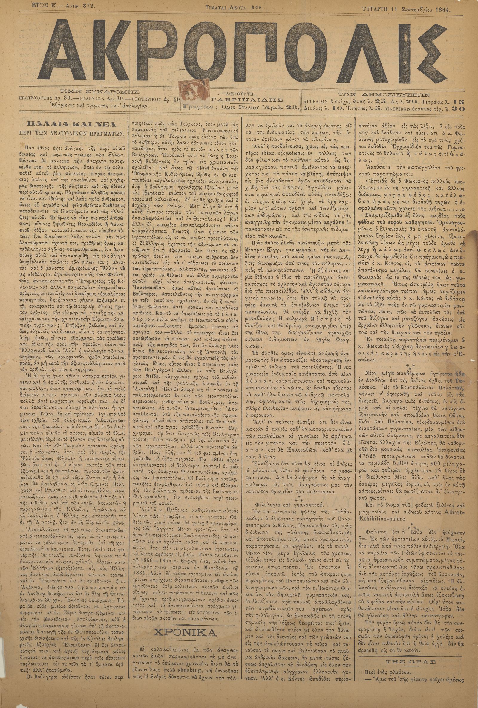 Ακρόπολις 11/09/1884
