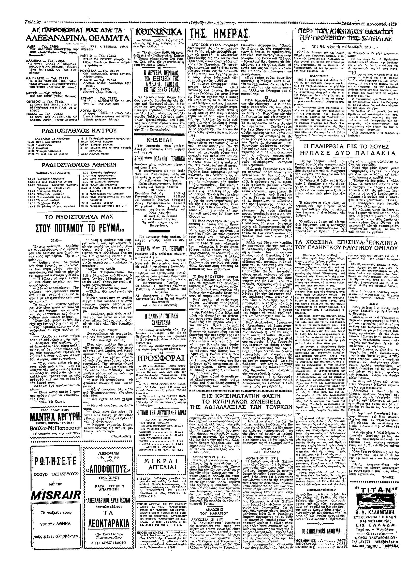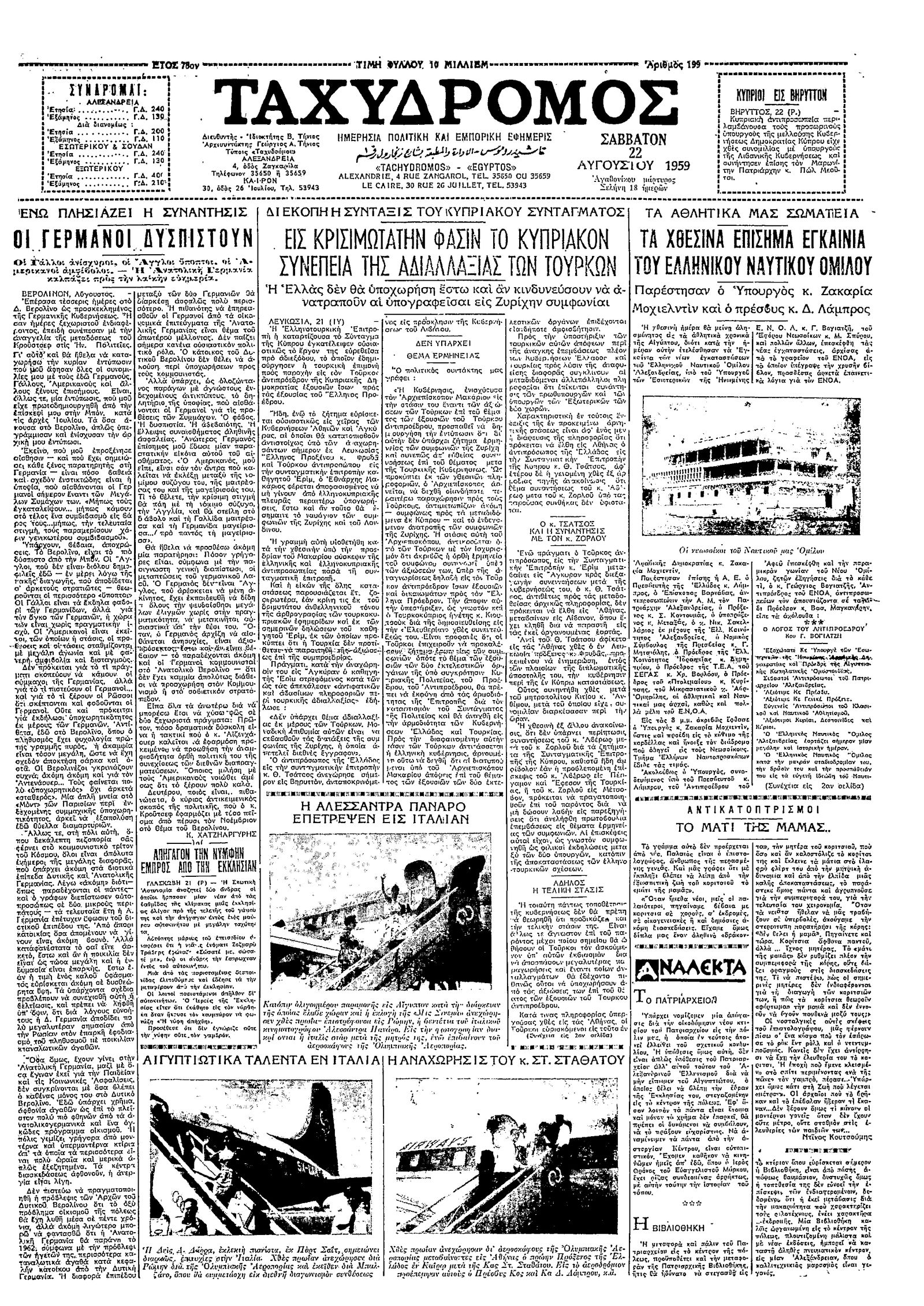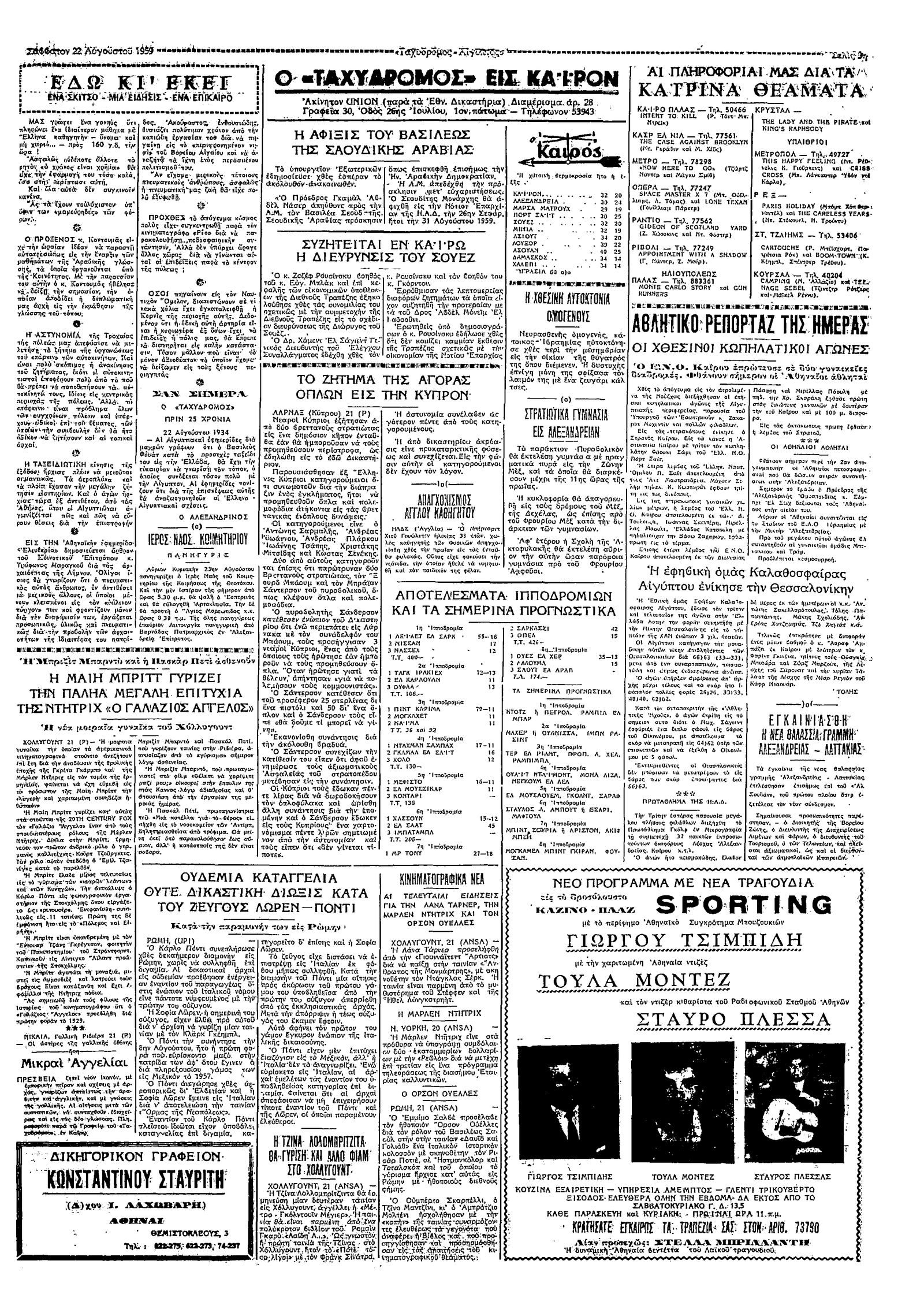 Ταχυδρόμος 22/08/1959