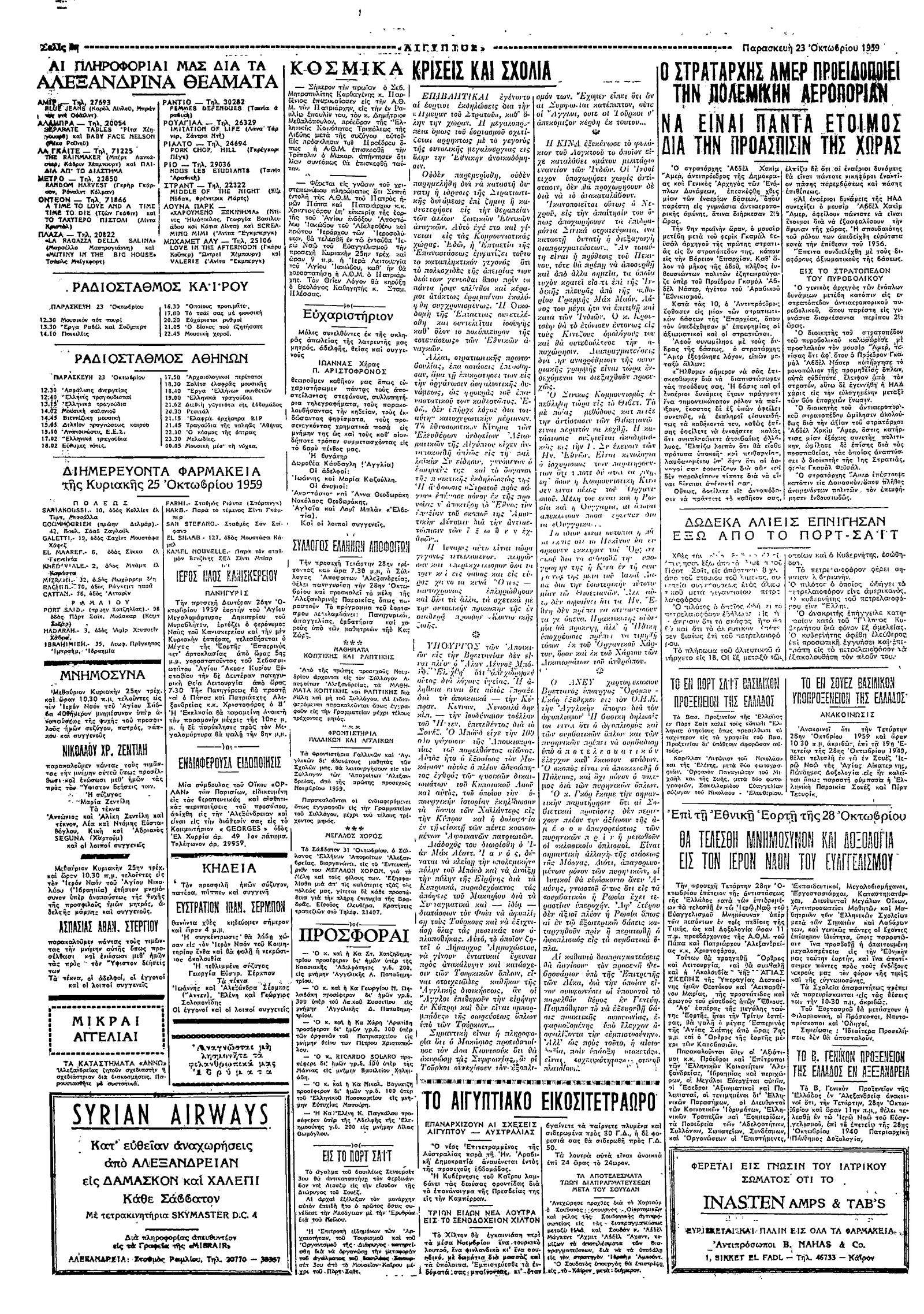 Ταχυδρόμος 23/10/1959