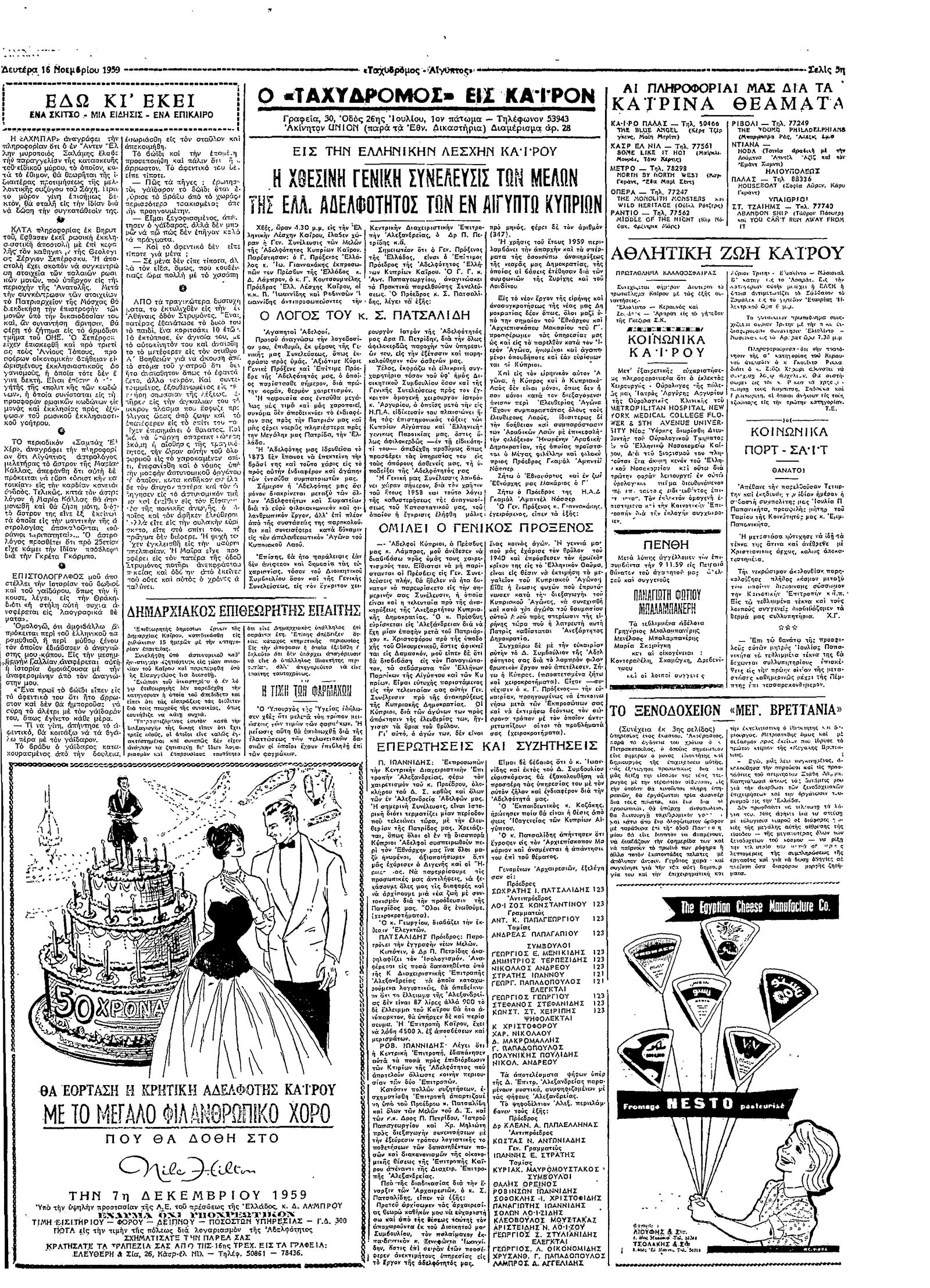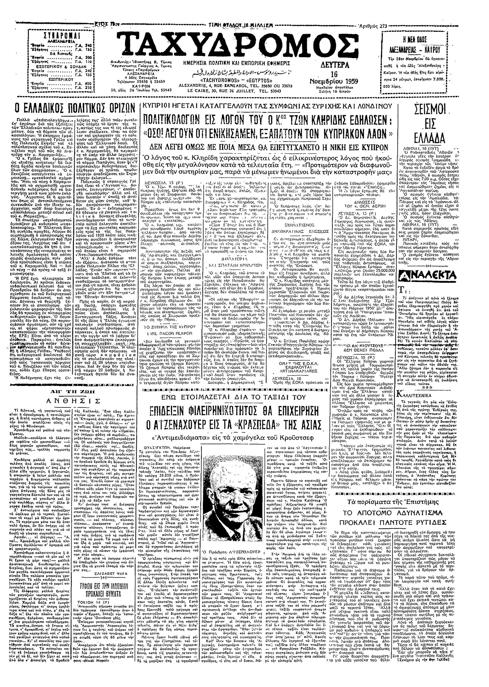 Ταχυδρόμος 16/11/1959