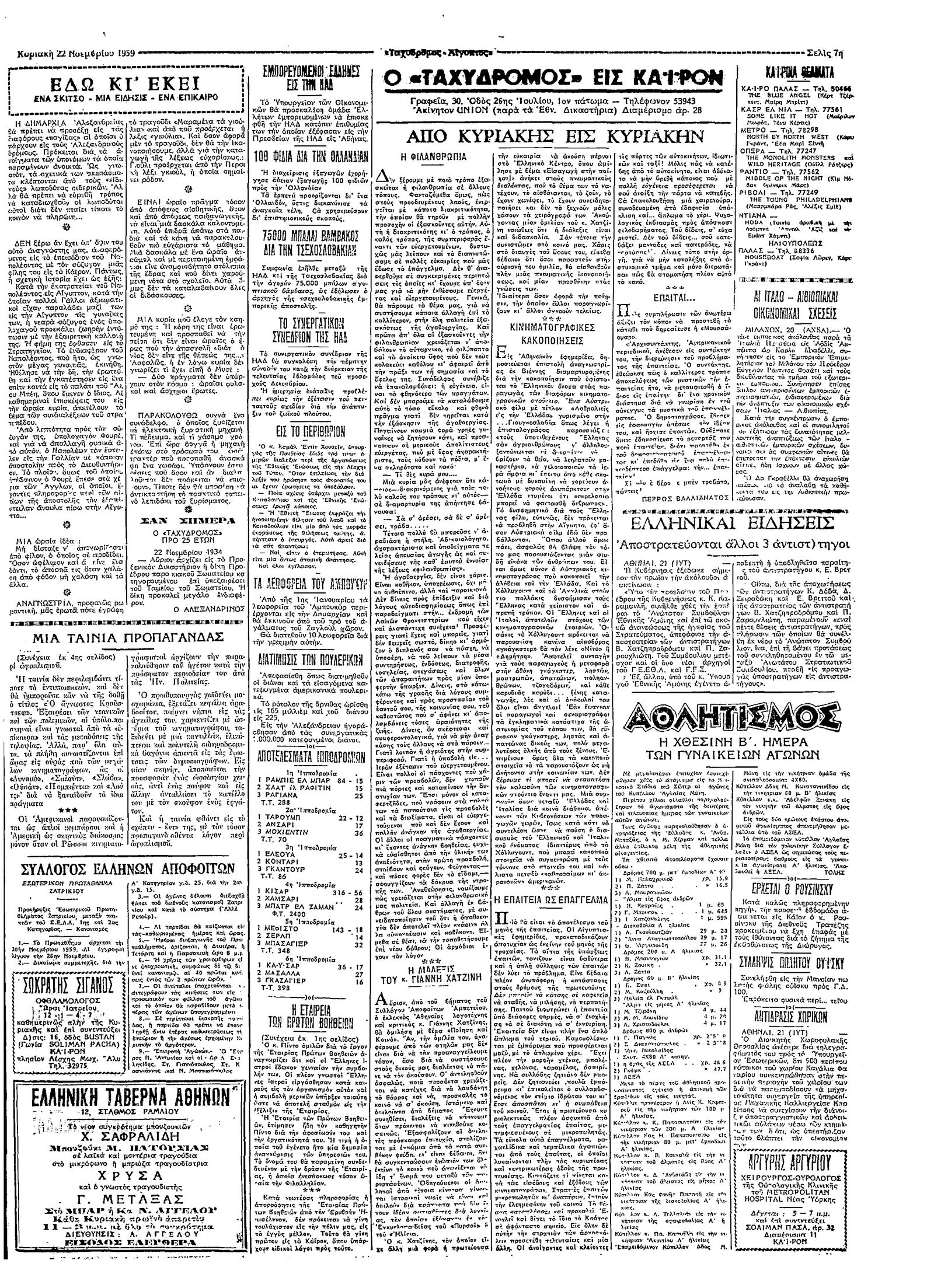 Ταχυδρόμος 22/11/1959