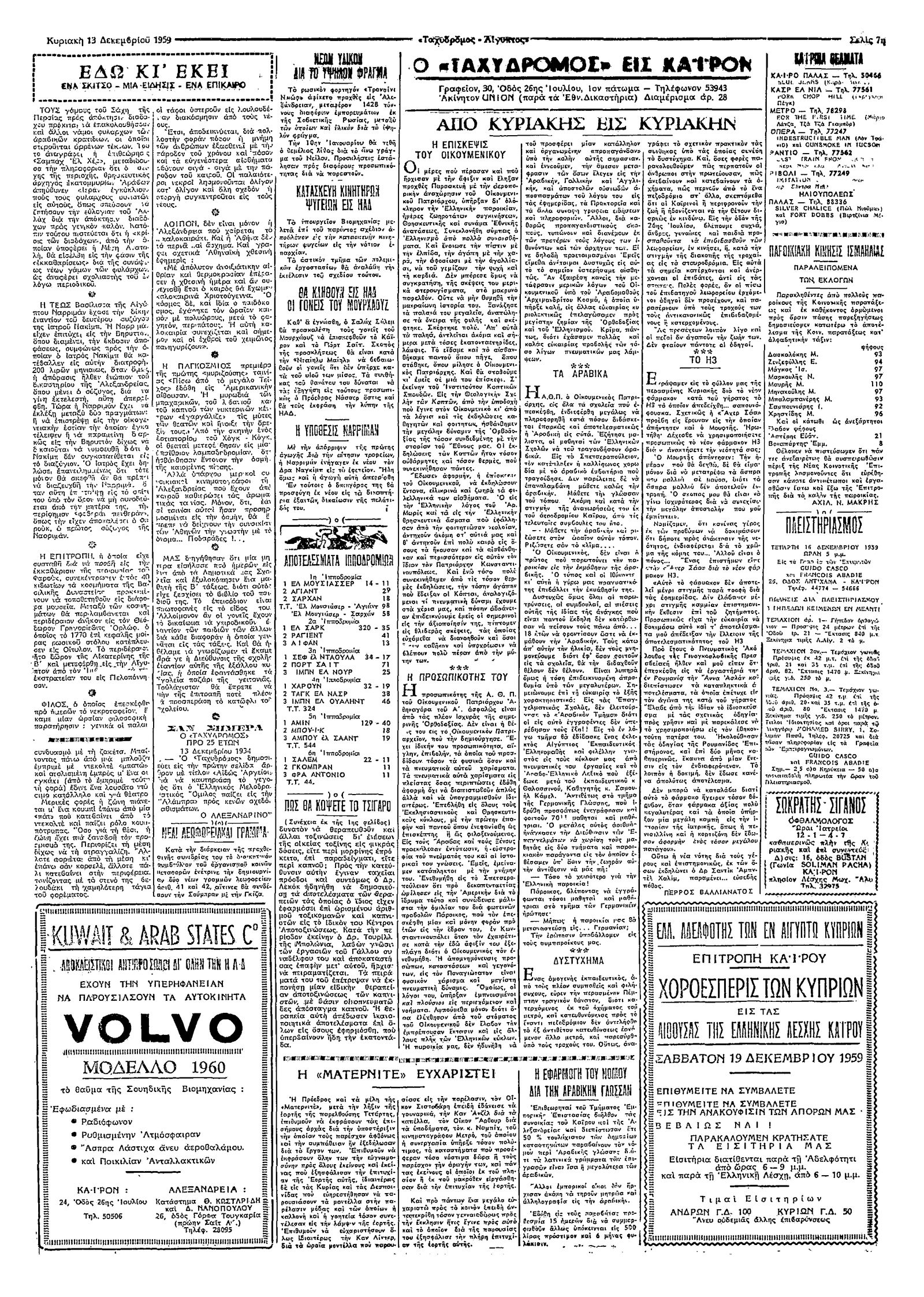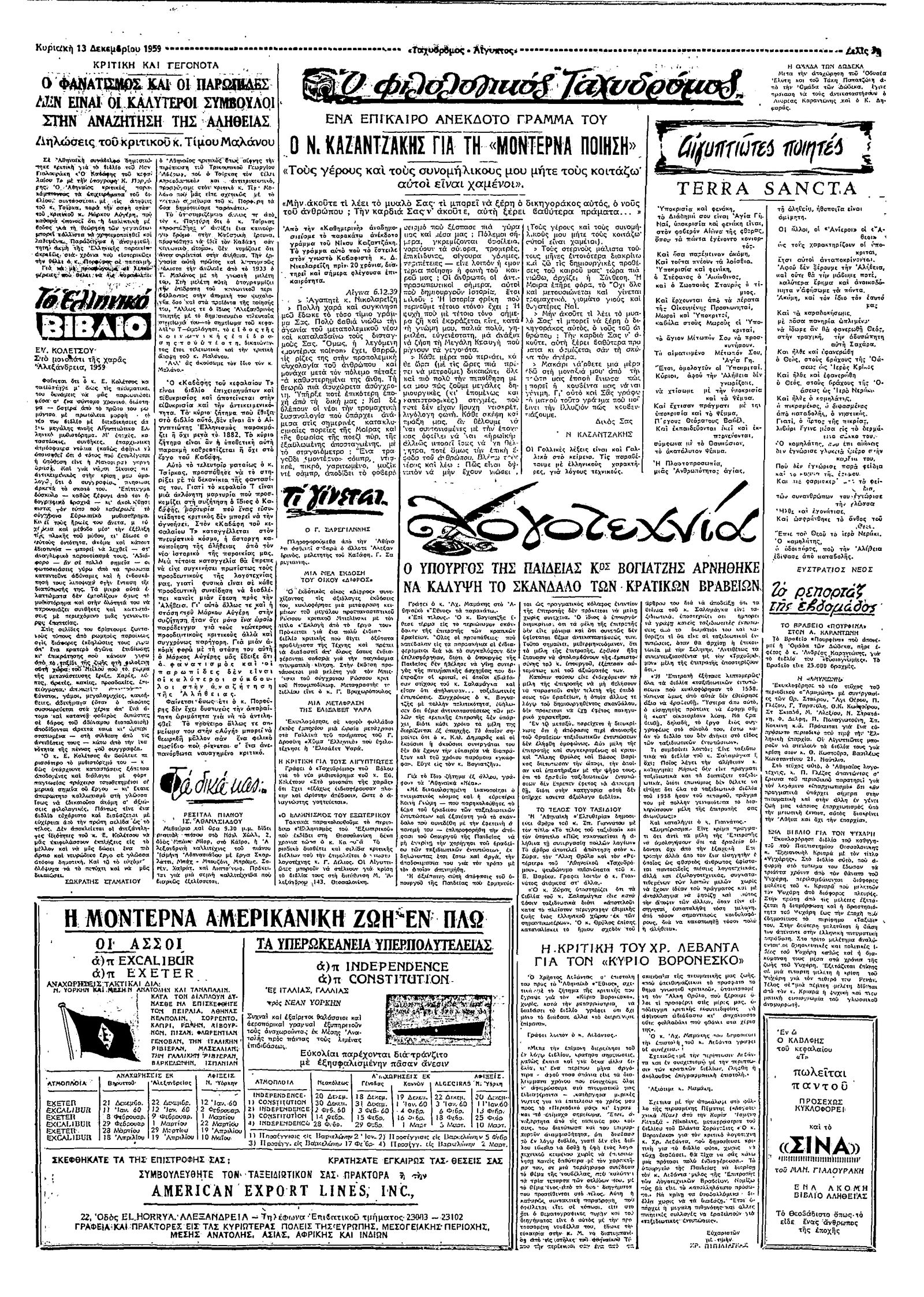 Ταχυδρόμος 13/12/1959