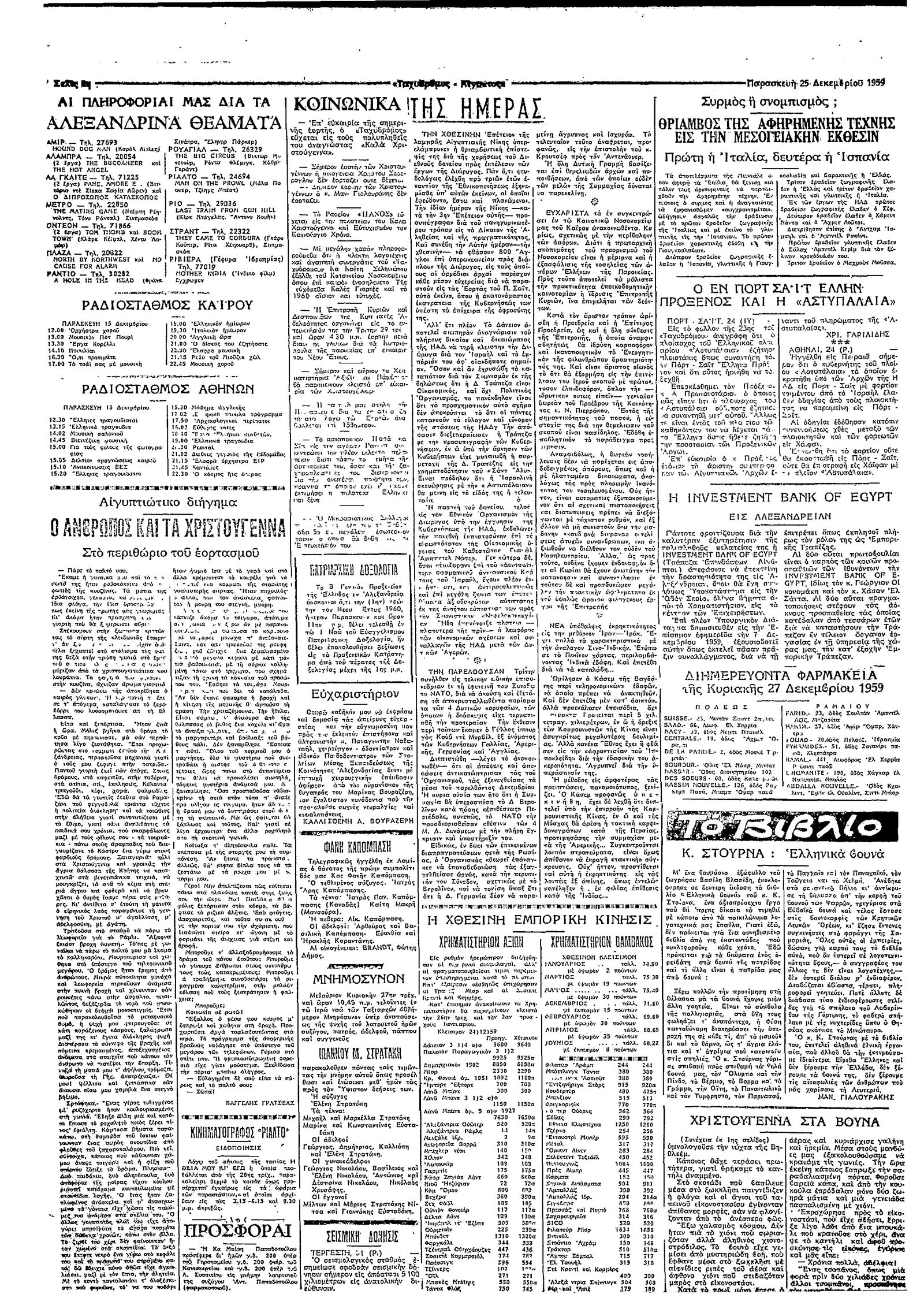 Ταχυδρόμος 25/12/1959