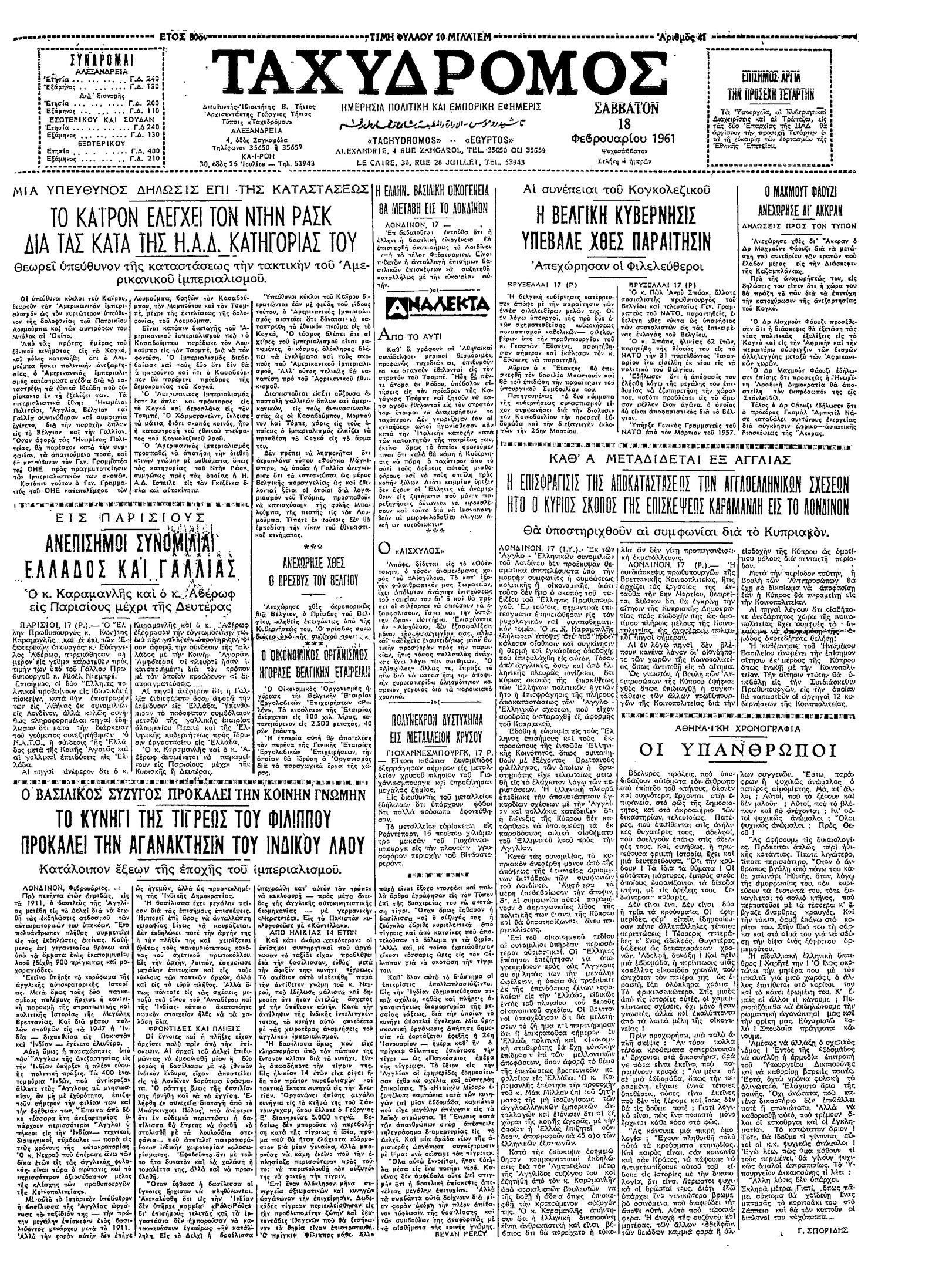 Ταχυδρόμος 18/02/1961